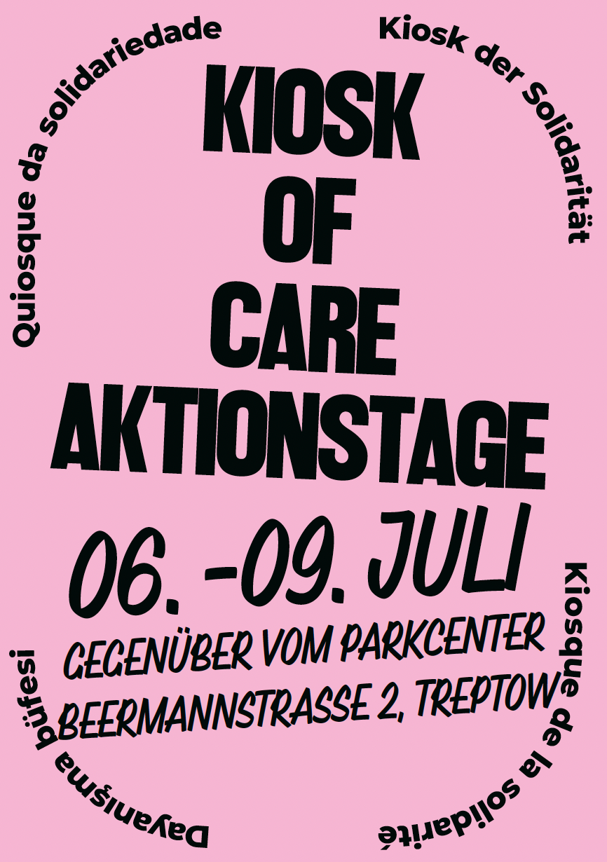 Im Juli 2024 haben wir mit dem Kiosk of Solidarity vier Tage lang die Straße vor dem ParkCenter besetzt – gemeinsam mit Nachbarinnen, Passantinnen und Unterstützer*innen.